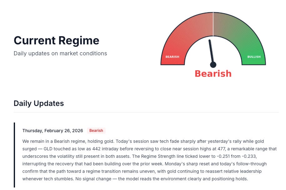 The new Current Regime page now includes a visual regime strength meter and a cleaner, more focused layout designed for quick daily reference: