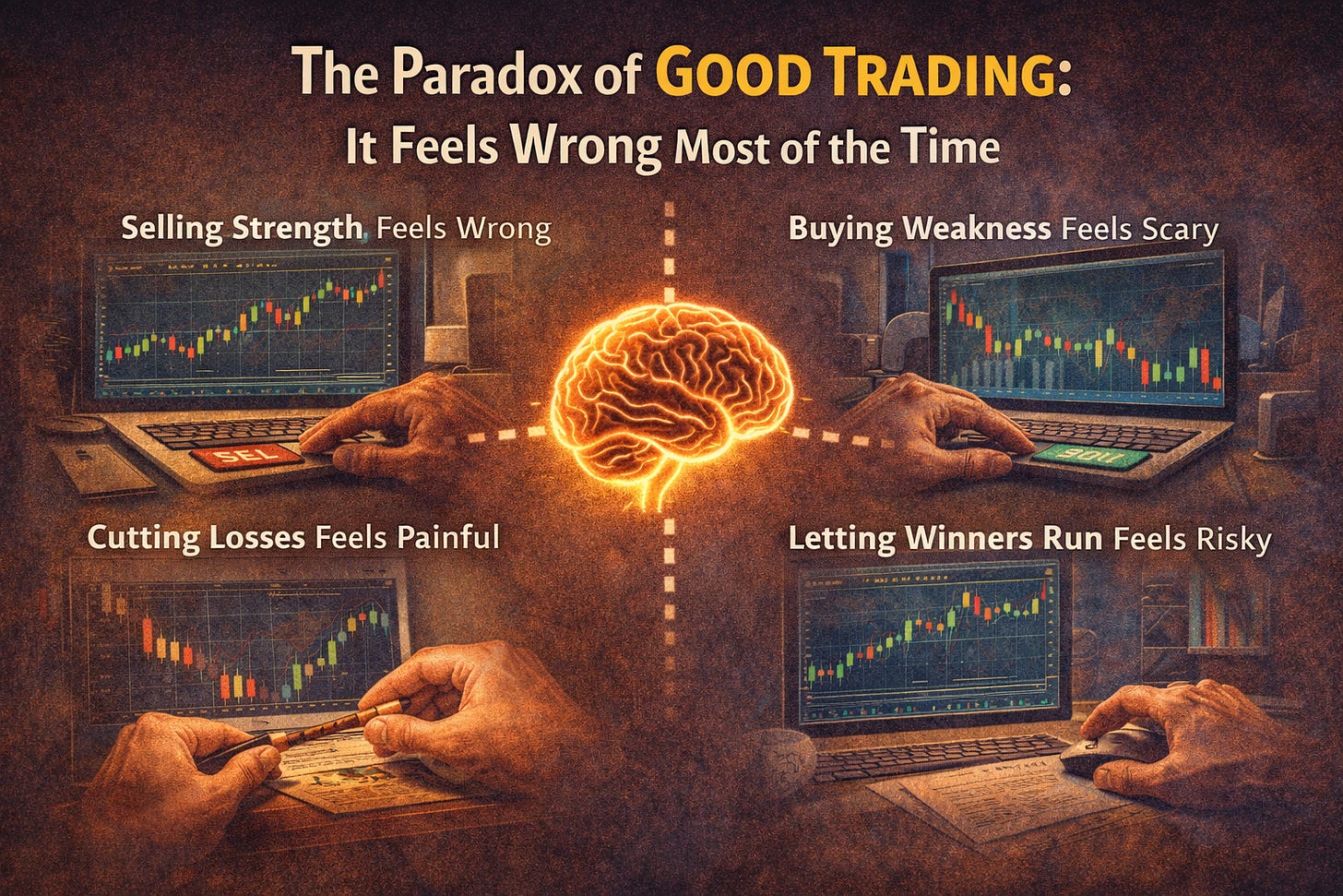 This creates one of the central paradoxes of trading: the correct decision often feels wrong.